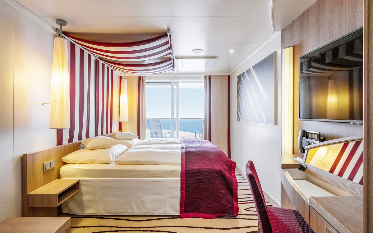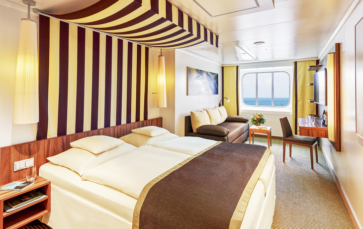 Die Kabinenverteilung innerhalb Ihrer gebuchten Kategorie obliegt der Reederei. Unsere Partnerreederei versucht, ihre Kabinenwünsche innerhalb Ihrer gebuchten Kategorie zu berücksichtigen, was jedoch nicht immer gelingt.