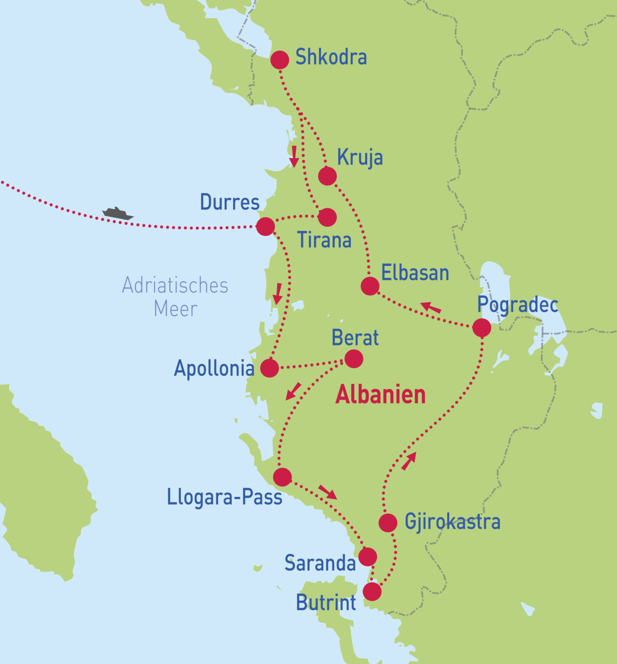 Albanien – die Perle des Balkans - Mi. 08.04. - So. 19.04.26Albanien – die Perle des Balkans - Mi. 20.05. - So. 31.05.26Albanien – die Perle des Balkans - Mo. 12.10. - Fr. 23.10.26