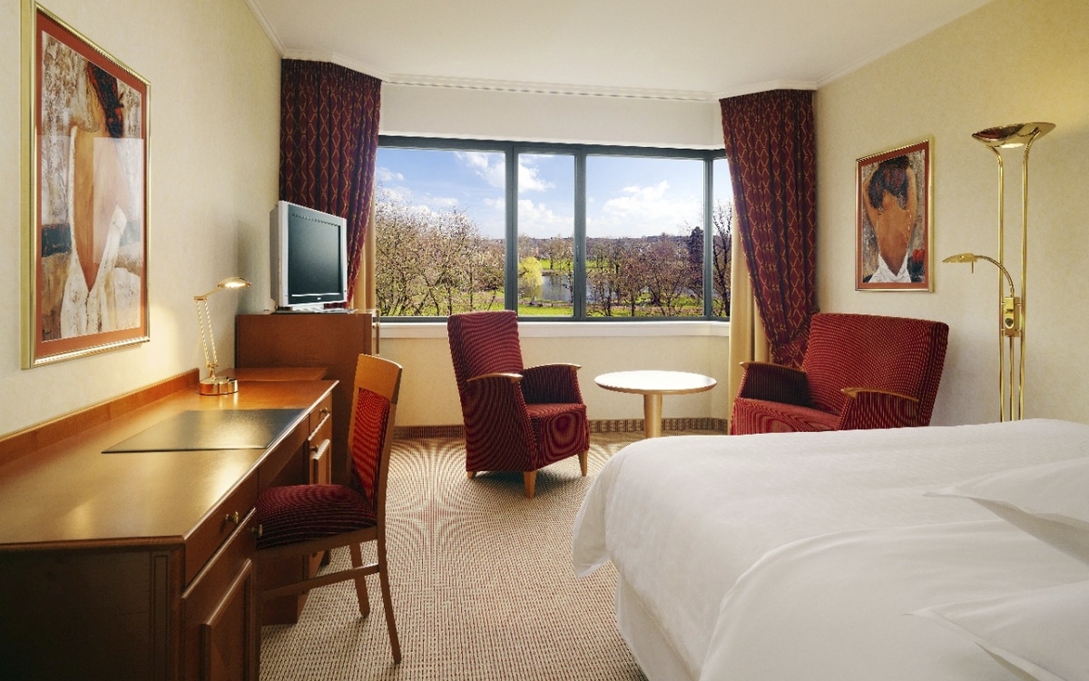Ihr komfortables "Sheraton Hotel Essen" befindet sich mitten im Herzen von Essen, idyllisch in einem Park gelegen. Die zentrale Lage nahe Bahnhof und Innenstadt verbindet Ruhe mit bester Erreichbarkeit. Freuen Sie sich auf stilvolle Zimmer mit Blick ins Grüne oder auf die Skyline, einen modernen Fitness- und Wellnessbereich sowie ein erstklassiges Restaurant. Im Sommer lädt die Terrasse zum entspannten Verweilen ein. Ihre modern eingerichteten Zimmer bieten Bad oder Dusche/WC und TV.