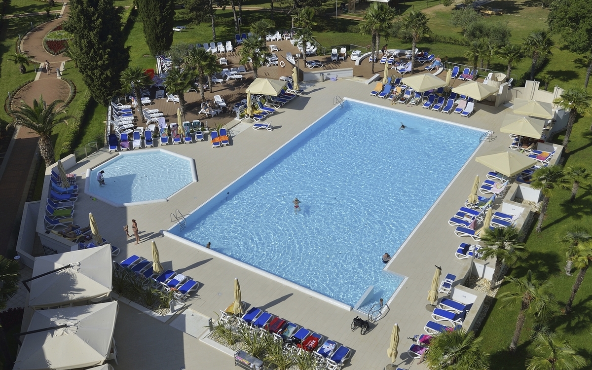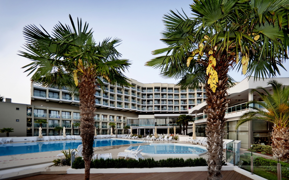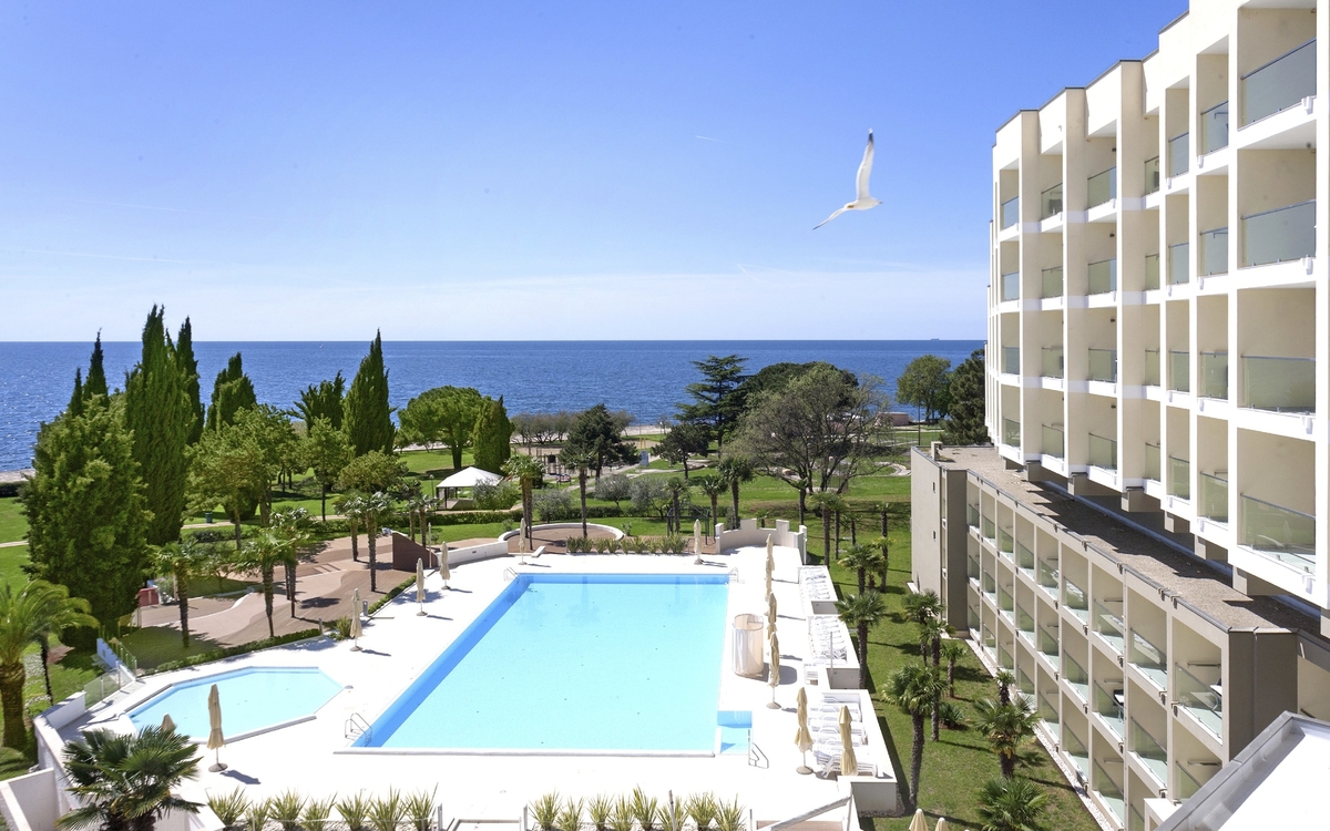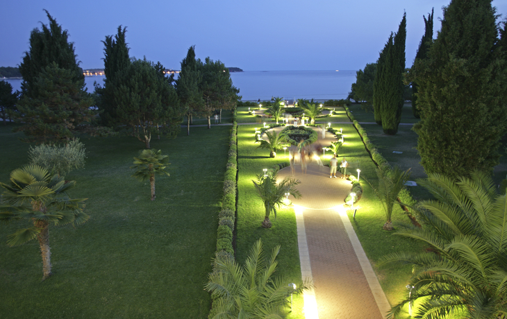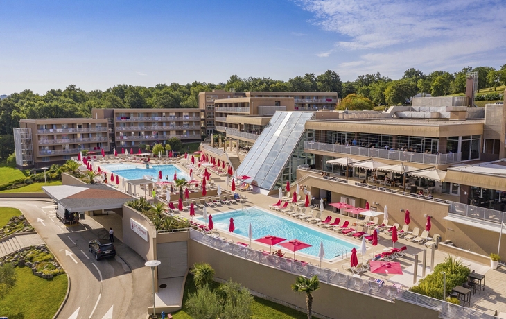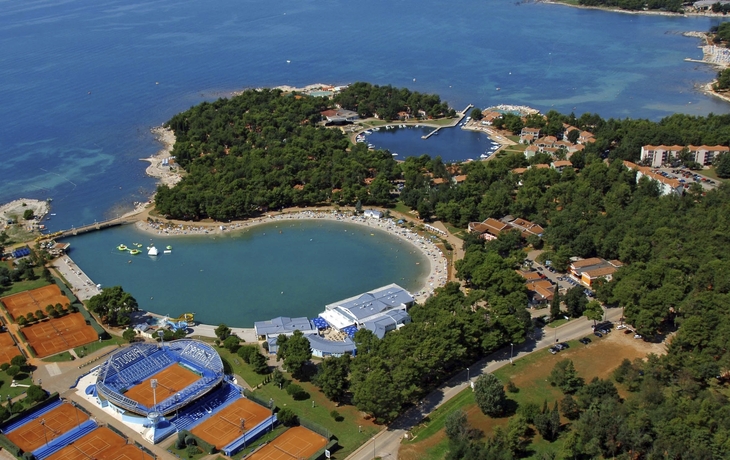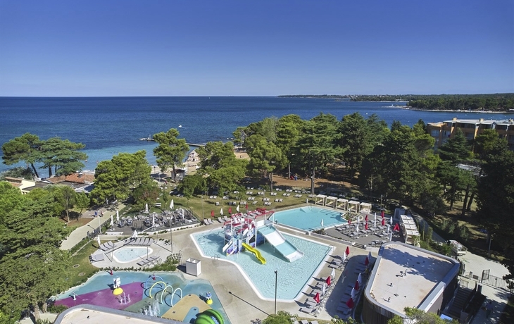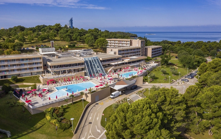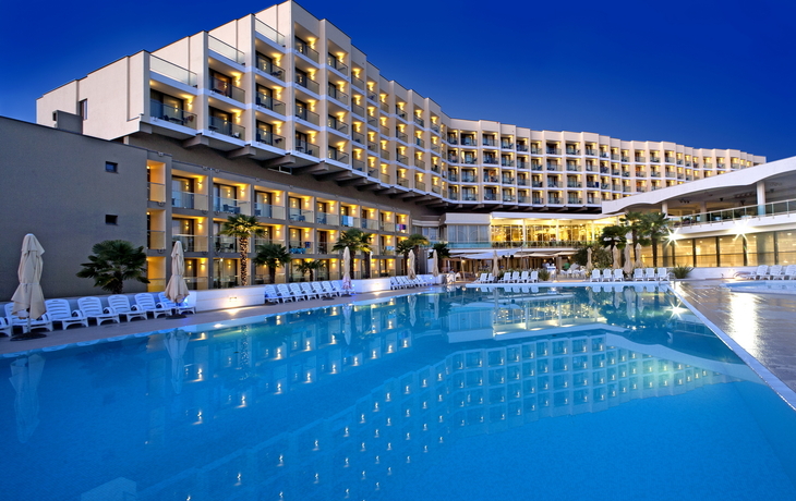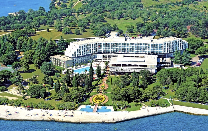Ihr ****Hotel "Molindrio Plava Laguna" in Poreč liegt im Zelena Resort direkt am Meer, nur wenige Gehminuten vom Strand entfernt. In unmittelbarer Nähe befinden sich einige Restaurants, Bars und Geschäfte. Der Stadtkern von Poreč ist ca. 4 km entfernt und kann gegen Aufpreis per Boot oder Bummelzug erreicht werden. (Hauptsaison) Zu den sportlichen Aktivitäten im Hotel gehören Tennis, Tischtennis, Beachvolleyball, Wasserski und vieles mehr. (teilweise gegen Aufpreis, saisonal begrenzt). Das Hotel verfügt über zwei Außenpools (teilweise beheizt), ein Whirlpool im Wellnessbereich, Massagebereich, zwei Restaurants, Cafe, Lobbybar, Poolbar, Gemeinschaftslounge, Friseur, Souvenirgeschäft sowie Geldautomat. Die Nutzung von kostenfreiem Wi-Fi ist inbegriffen. In den Sommermonaten finden am zentralen Strand des Resorts Abendkonzerte, Theateraufführungen, Spiele und Kinovorführungen statt. Zum Abendessen sind Getränke vom Fass (Saft, Wasser, Tischwein weiß und rot, Bier) im Preis inbegriffen. Ihre Zimmer verfügen über Bad oder Dusche/WC, Haartrockner, Telefon, Sat-TV, Safe, Klimaanlage und Balkon.