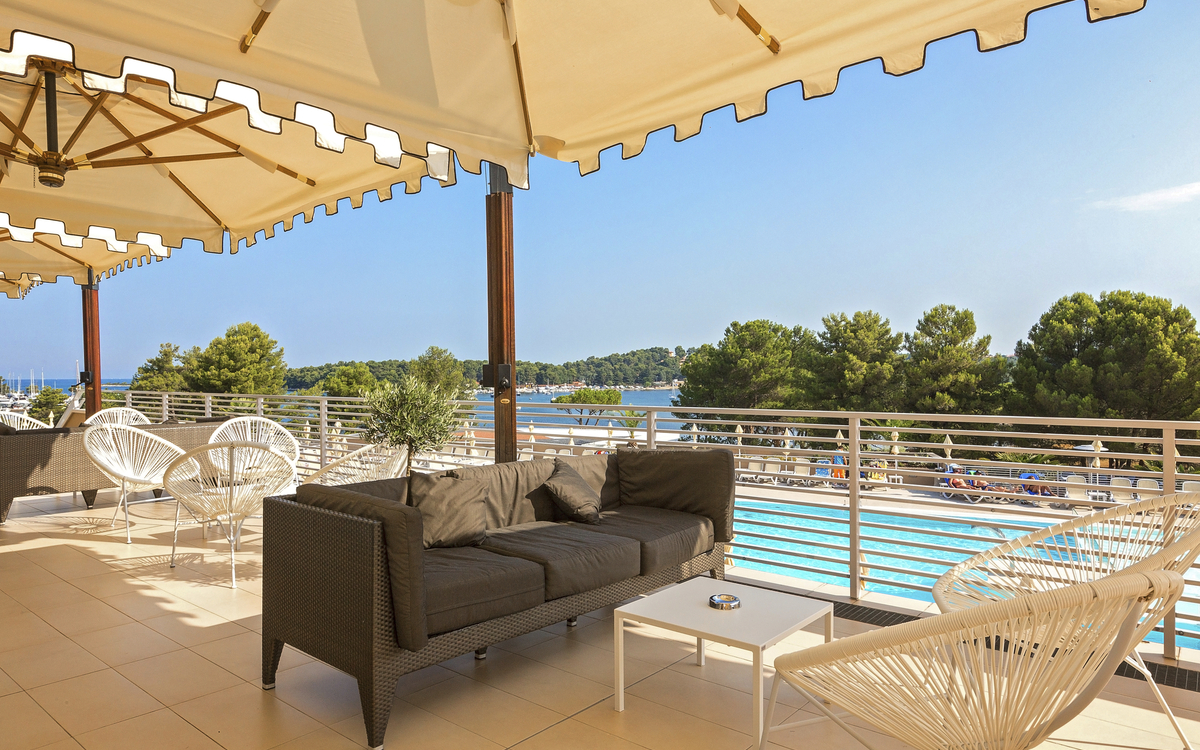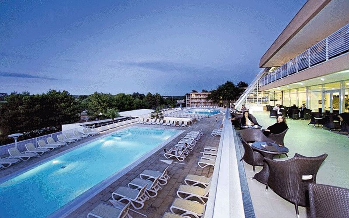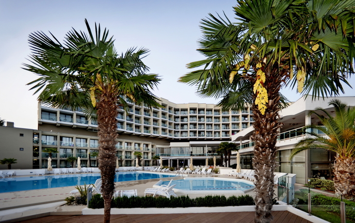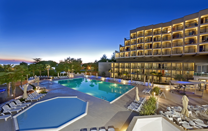 Ihr ****Hotel "Sipar Plava Laguna" in Umag liegt nur wenige Gehminuten vom Strand und ca. 1 km vom Zentrum entfernt. Ihr Strandhotel ist für die Gäste das ideale Reiseziel, die Entspannung und Komfort in ihrem Urlaub suchen. In der Umgebung des Hotels finden Sie zahlreiche Bars, Restaurants und Geschäfte. Zudem ist Ihre Unterkunft durch eine schöne Uferpromenade, welche zu Spaziergängen einlädt, mit dem historischen Stadtkern von Umag verbunden. Eine Vielzahl sportlicher Aktivitäten ist möglich, z.B. Wassersport, Tennis, Beach-Volleyball, Fahrrad fahren sowie diverse Wassersportarten am Strand u.v.m. (Aktivitäten z.T. gegen Aufpreis vor Ort, und saisonal bedingt) In Ihrem Hotel erwarten Sie ein Restaurant mit Show Cooking, ein à-la-carte-Restaurant, mehrere Bars und WLAN, welches Sie in allen Bereichen des Hauses kostenfrei nutzen können. Die Restaurants bieten Ihnen lokale und internationale Speisen zum Verzehr an. In der Hotelanlage befinden sich ein Meerwasserpool und der Punta Pool Komplex. Der Komplex umfasst drei Pools, einen Sprühpark, eine Freilichtbühne, einen Kinderspielplatz, einen Activity & Experience Club mit PEPI Club und Games Room. Ihre modern eingerichteten Zimmer verfügen über Bad oder Dusche/WC, Haartrockner, Telefon, Sat-TV, Safe, Klimaanlage und Balkon.