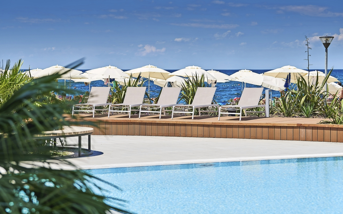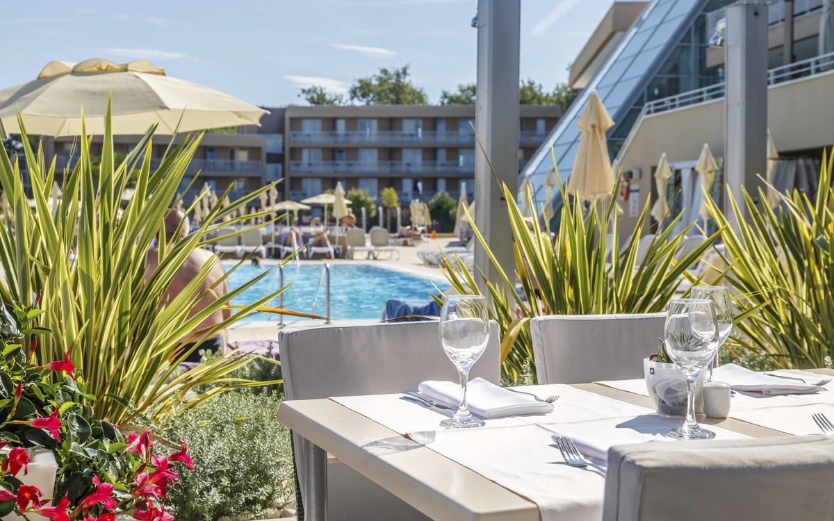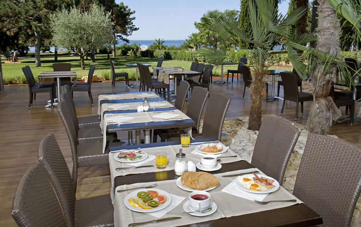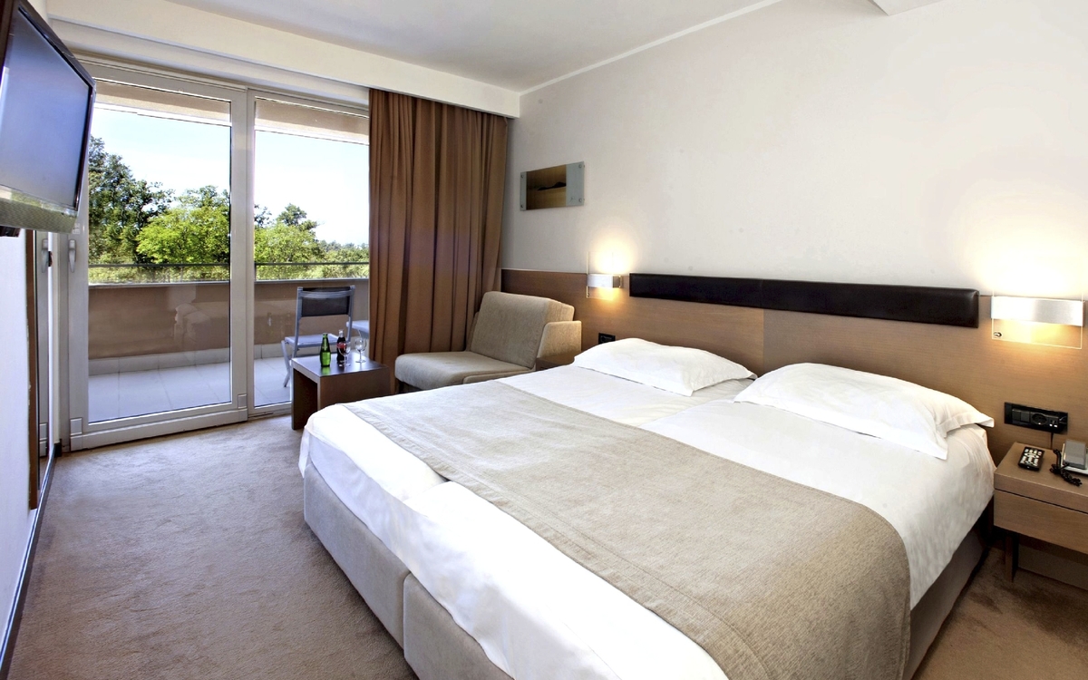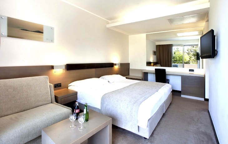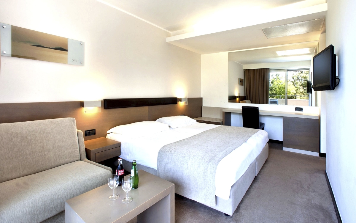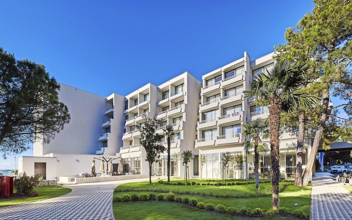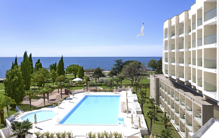 Ihr ***Hotel "Materada Plava Laguna" in Poreč liegt direkt am Meer und ist nur wenige Gehminuten vom Strand entfernt. Ihr charmantes und modernes Urlaubshotel ist umgeben von weitläufigen Parks, mediterranen Gärten und zahlreichen Rasenflächen zum Sonnenbaden. Der ideale Platz für echte Erholung. Entlang der Uferpromenade erreichen Sie das wunderschöne Städtchen Poreč zu Fuß bereits in einer halben Stunde oder bequem mit dem örtlichen Bähnchen (Hauptsaison). In der Nähe des Hotels befinden sich Volleyball- und Fußballplätze und am Strand können Sie verschiedene Wassersportarten ausprobieren. (Aktivitäten z. T. gegen Aufpreis vor Ort und saisonal begrenzt) In Ihrem Hotel erwarten Sie ein Außenpool, ein Restaurant, eine Aperitif- und Poolbar, einen Massagesalon sowie ein Friseur. Die Nutzung von kostenfreiem Wi-Fi ist inbegriffen. Zum Abendessen sind Getränke vom Fass (Saft, Wasser, Tischwein weiß und rot, Bier) im Preis inbegriffen. Ihre Zimmer verfügen über Bad oder Dusche/WC, Haartrockner, Telefon, Sat-TV und Balkon.
