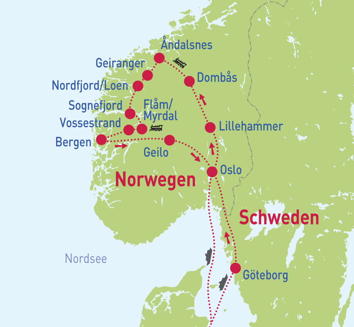 Fjordzauber auf Schienen - Mo. 08.06. - Mo. 15.06.26Fjordzauber auf Schienen - Mo. 24.08. - Mo. 31.08.26