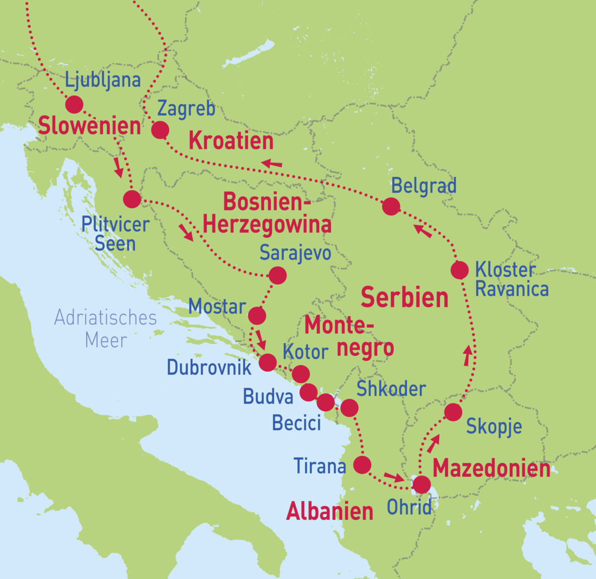 Slowenien - Kroatien - Bosnien & Herzegowina - Montenegro - Albanien - Mazedonien - Serbien
