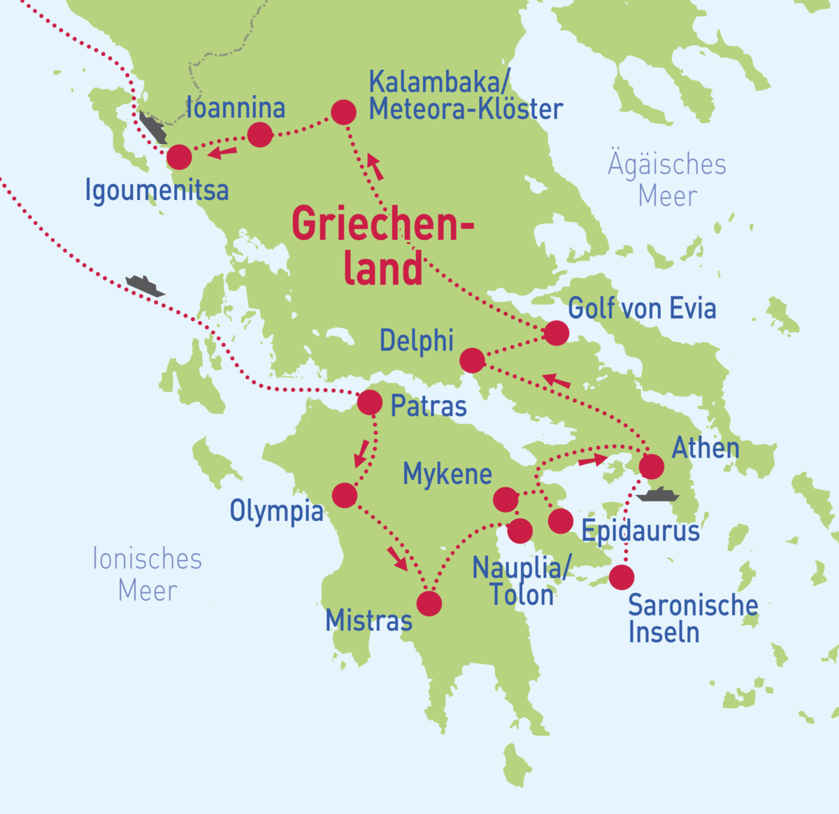 Olympia – Mykene – Epidaurus – Athen – Delphi – Meteora