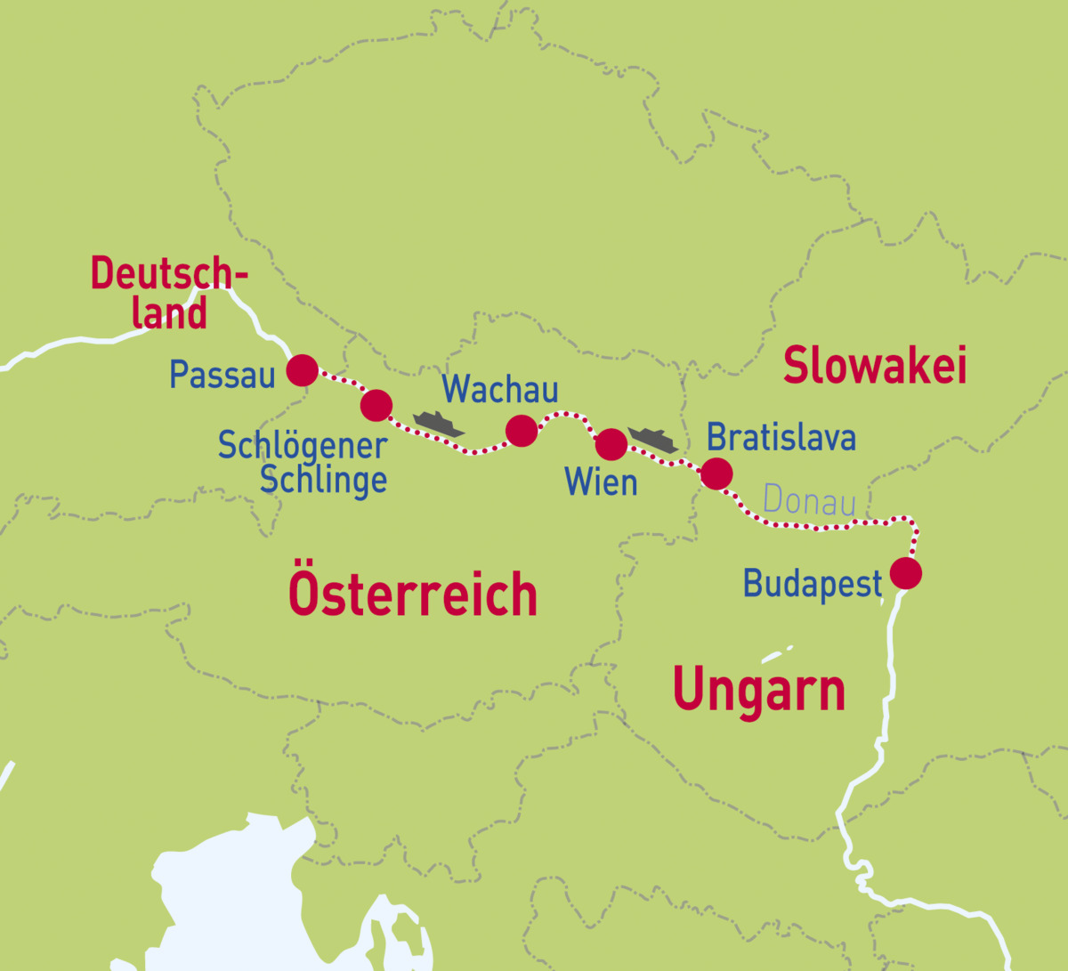 Passau – Wien – Budapest – Bratislava – Wachau – Passau