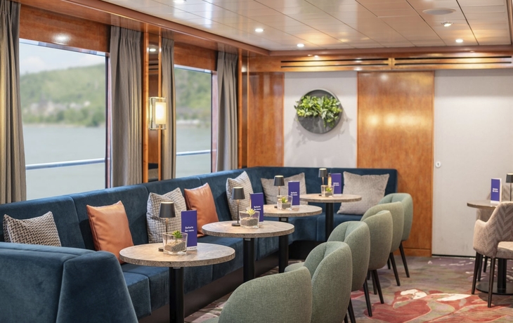 Die "VIKTORIA" wurde im Winter 2023/24 modernisiert und bietet Ihnen ein geschmackvolles Ambiente, ein besonders hohes Maß an Komfort in den geräumigen und stilvollen Kabinen sowie einen großzügigen Wellnessbereich mit Sauna, Whirlpool und Ruhebereich. Im großzügigen Panorama-Restaurant werden internationale Spezialitäten ebenso wie Gerichte aus der Küche der Länder entlang der Reiseroute gereicht. Weiterhin finden Sie an Bord einen Panorama-Salon mit Bar, Souvenir-Shop sowie ein Sonnendeck mit Windschutzelementen, Sonnensegel, Liegestühlen und Tischen. Die Bordwährung ist Euro, die Zahlung erfolgt in bar, mit Ihrer EC-Karte oder mit Ihrer Kreditkarte (Mastercard, VISA, PIN-Nummer erforderlich). Die Stromspannung ist 220 V.