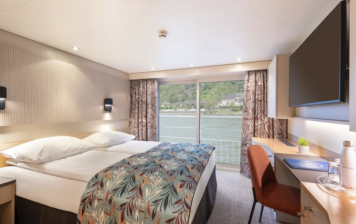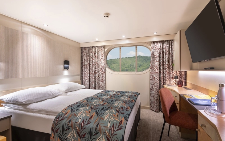 Alle Kabinen sind stilvoll und komfortabel eingerichtete Außenkabinen und verfügen über Dusche/WC, Haartrockner, Sat-TV mit Radio, Kühlschrank, Safe, Telefon und eine individuell regulierbare Klimaanlage. Die Kabinen wurden im Winter 2024/25 erneuert. Mit ca. 16 m² Große, bieten sie nebeneinanderstehende Betten, die auf Wunsch getrennt gestellt werden können. Die Kabinen auf dem Mittel- und Oberdeck verfügen über bis zum Boden reichende Panoramafenster zum Öffnen (französischer Balkon), die Kabinen auf dem Hauptdeck über große, nicht zu öffnende Bullaugen.
