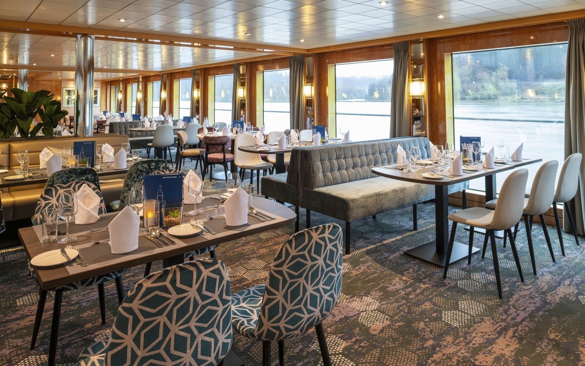 Komfort, Stil, eine moderne Einrichtung und viel Panorama erwarten Sie an Bord unserer "BOLERO", der im Winter 2023/24 modernisiert wurde. Genießen Sie einzigartige Ausblicke in bester Gesellschaft auf dem großzügigen Sonnendeck mit Windschutzelementen, Sonnensegel, Liegestühlen, Stühlen und Tischen oder ganz privat von Ihrer Kabine aus. Für entspannte Momente steht der großzügige Wellnessbereich mit Sauna, Ruhebereich, Whirlpool und Fitnessgeräten zur Verfügung. Im gemütlichen Panorama-Restaurant zaubert der Küchenchef täglich Gaumenfreuden auf Ihren Tisch. Die aufmerksame Crew verwöhnt Sie rund um die Uhr. Die Bordwährung ist Euro, die Bezahlung erfolgt bar, mit EC-Karte oder Kreditkarte (Mastercard, VISA, PIN-Nummer erforderlich). Die Stromspannung ist 220 V.