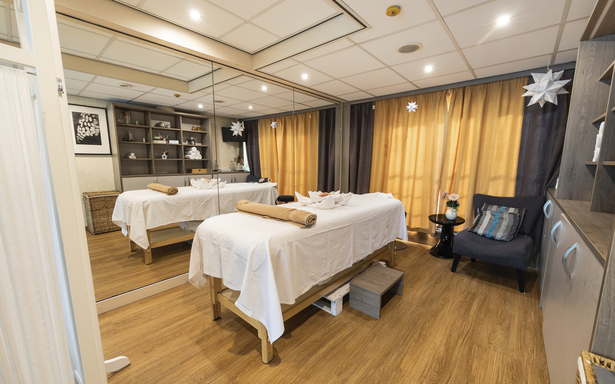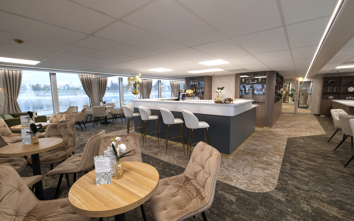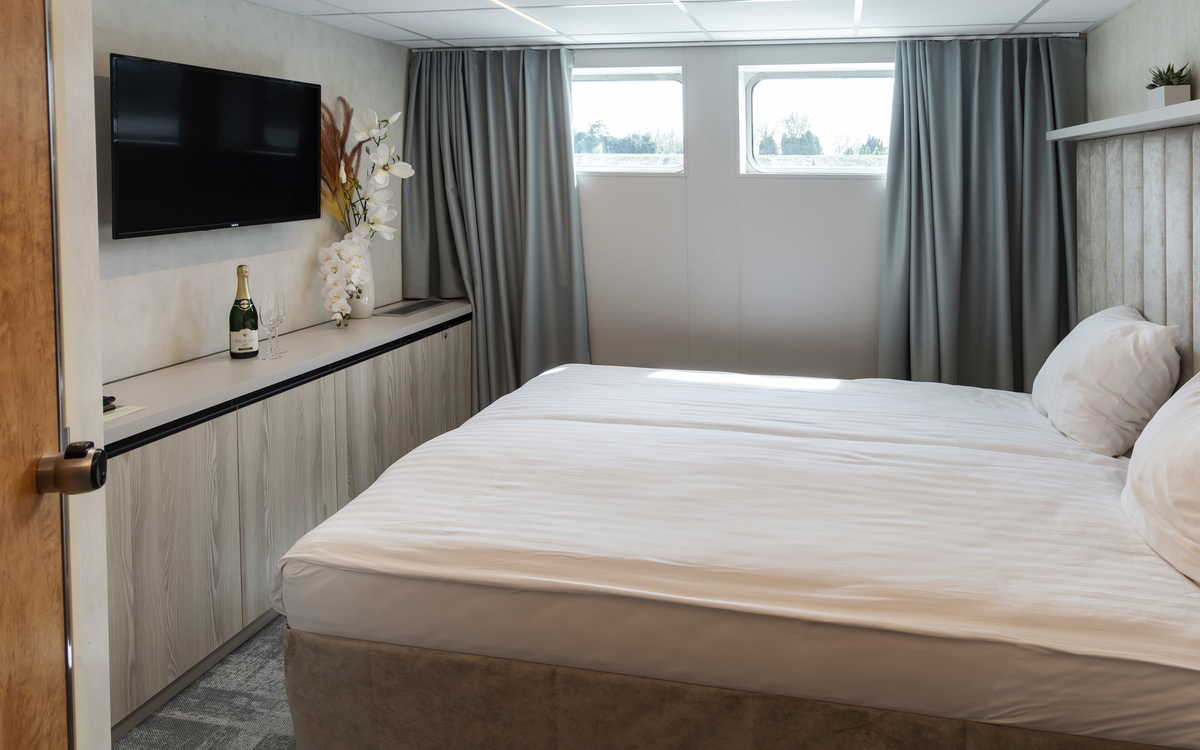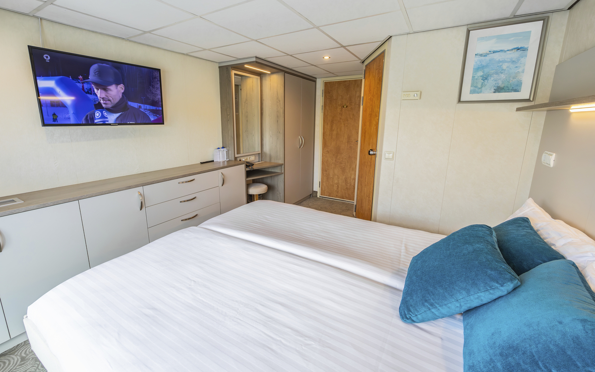 Die 14 m² großen, komfortablen Kabinen sind außenliegend und mit Dusche/WC, TV, Klimaanlage (individuell regulierbar), Telefon, Safe und Haartrockner ausgestattet. Die Suiten auf dem Oberdeck sind 21 m² groß. Alle Kabinen auf dem Oberdeck und Mitteldeck Superior verfügen über einen französischen Balkon, die Fenster auf dem Hauptdeck und Mitteldeck Standard sind nicht zu öffnen. Alle Kabinen sind mit Doppelbetten ausgestattet, die auch getrennt gestellt werden können.
