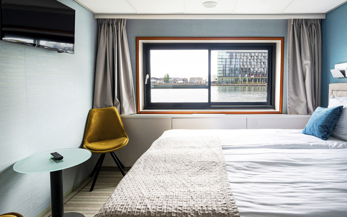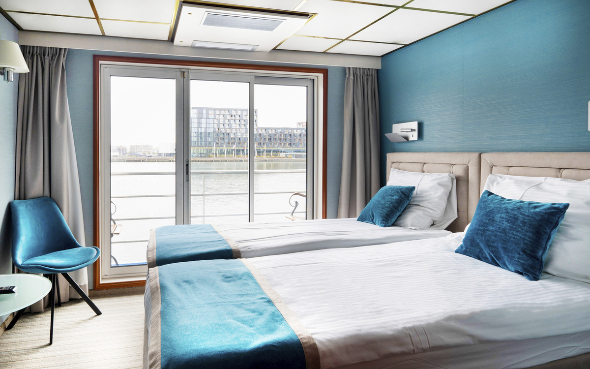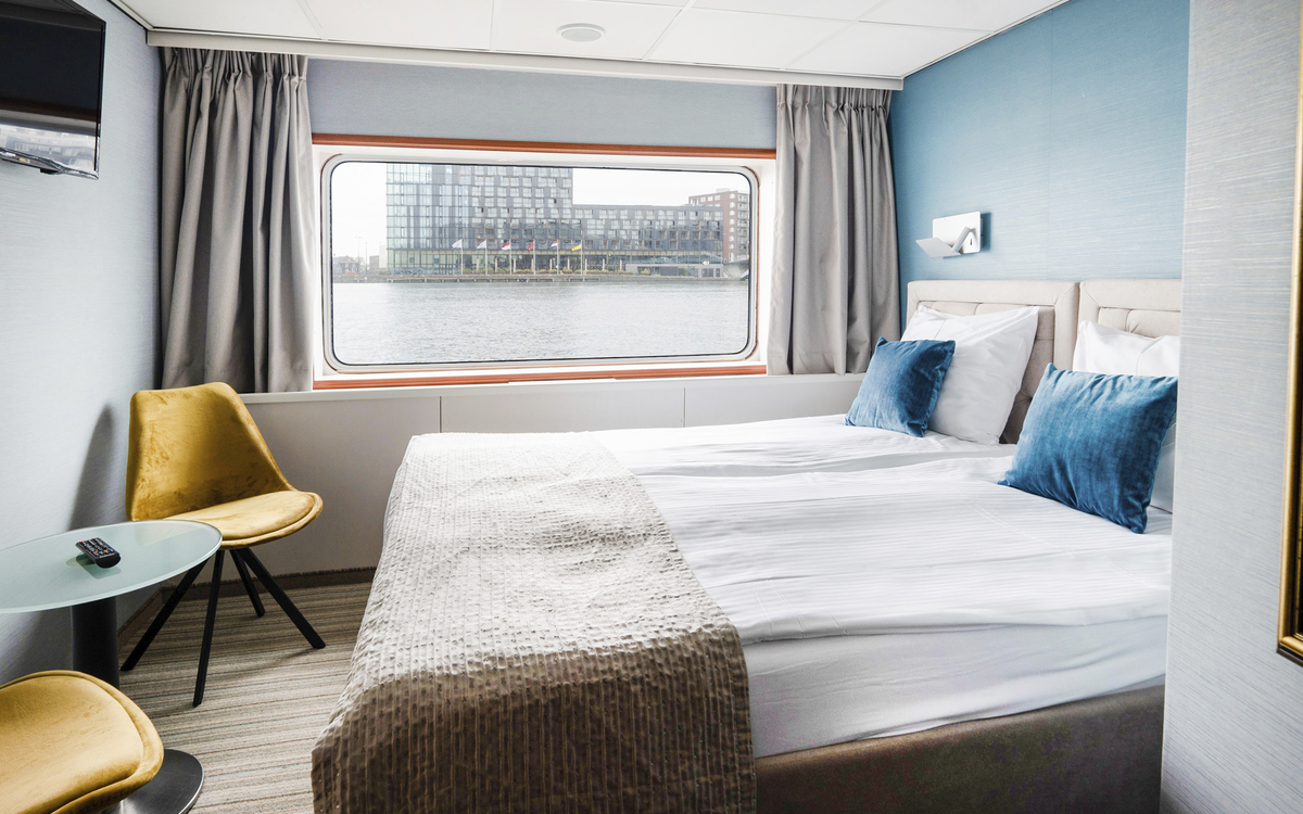 Die 15 m² großen, komfortablen Kabinen sind außenliegend und mit Dusche/WC, TV, Klimaanlage (individuell regulierbar), Telefon, Safe und Haartrockner ausgestattet. Die Fenster in den Kabinen auf dem Hauptdeck und Mitteldeck Standard sind nicht zu öffnen. Die Kabinen auf dem Mitteldeck Superior verfügen über Panoramafenster zum Öffnen, die Kabinen auf dem Oberdeck verfügen über einen kleinen Balkon. Alle Kabinen sind mit Doppelbetten ausgestattet, die auch getrennt gestellt werden können.