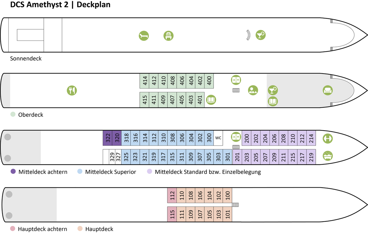 Unsere Partnerreederei versucht, Ihre Kabinenwünsche innerhalb Ihrer gebuchten Kategorie zu berücksichtigen, was jedoch nicht immer gelingt.