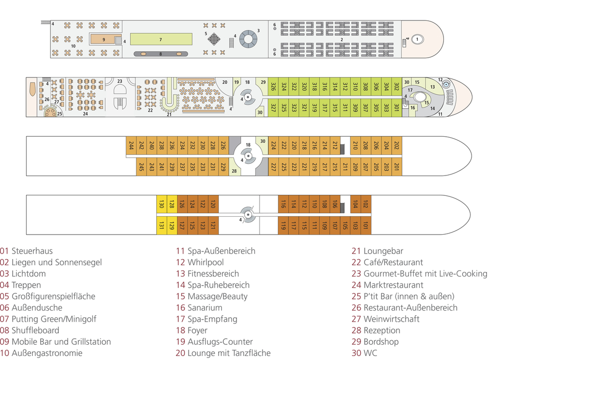 Unsere Partnerreederei versucht, Ihre Kabinenwünsche innerhalb Ihrer gebuchten Kategorie zu berücksichtigen, was jedoch nicht immer gelingt.