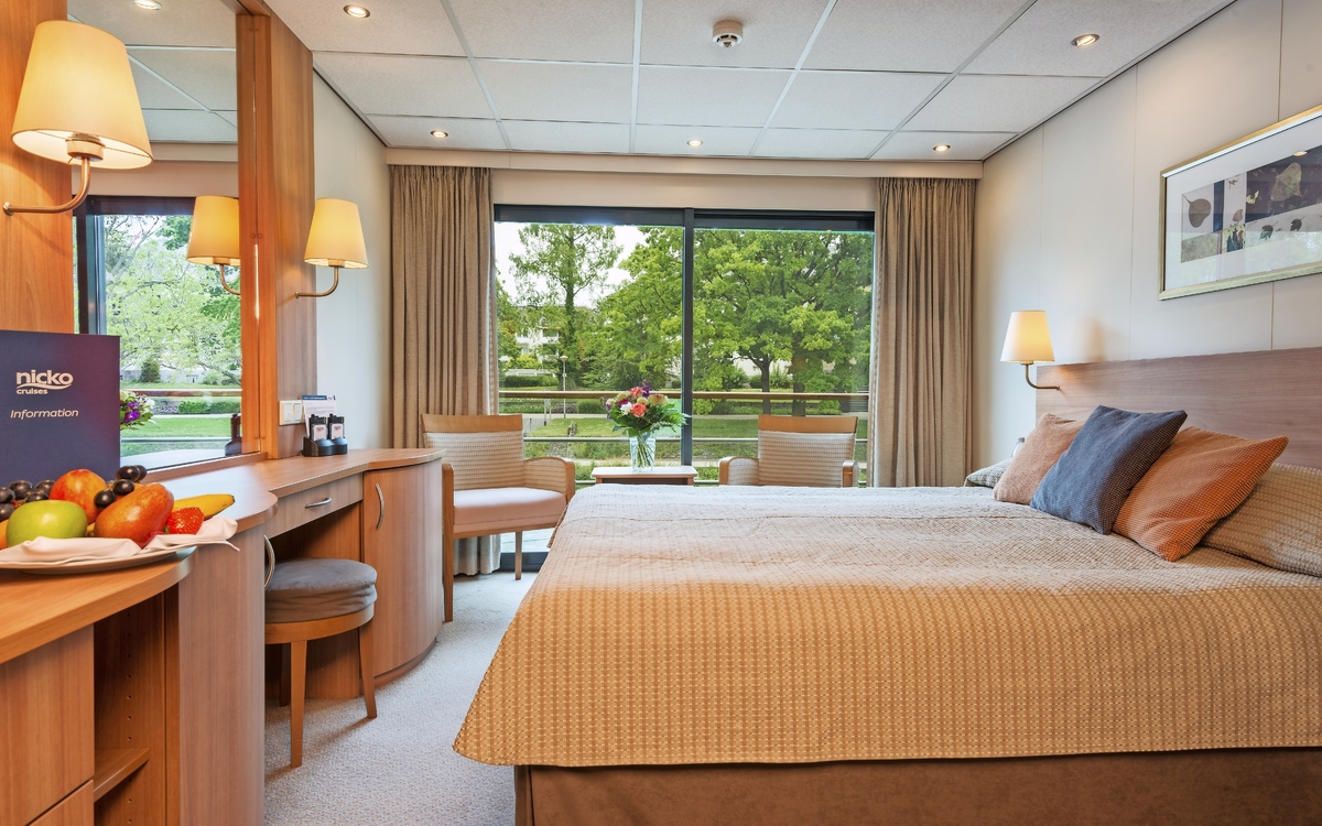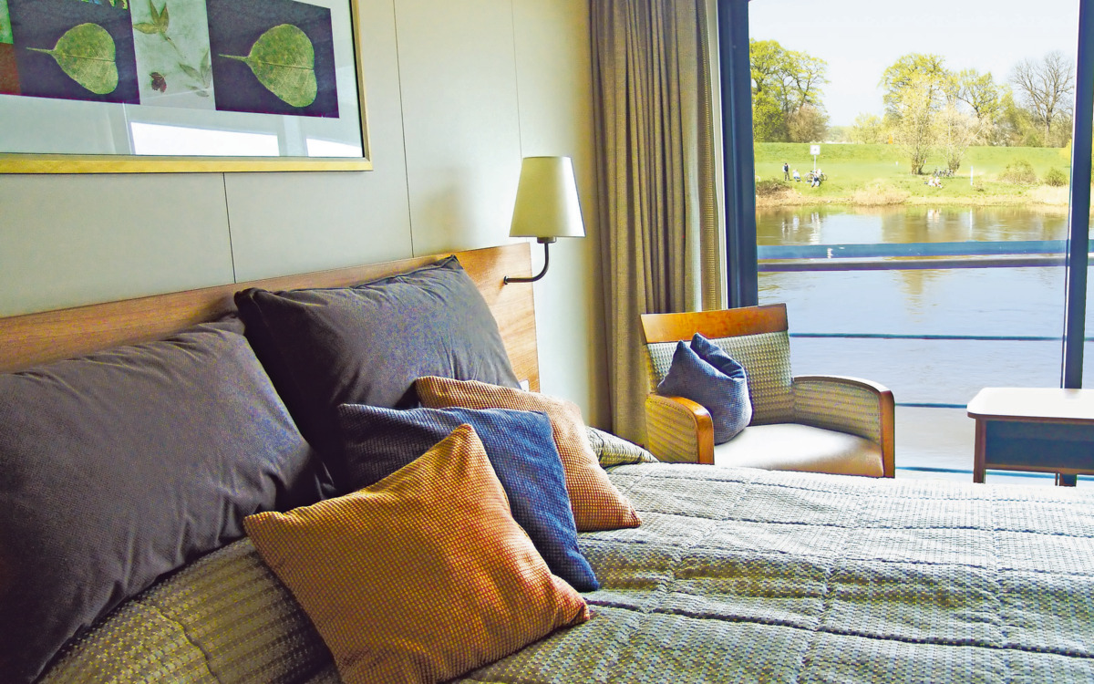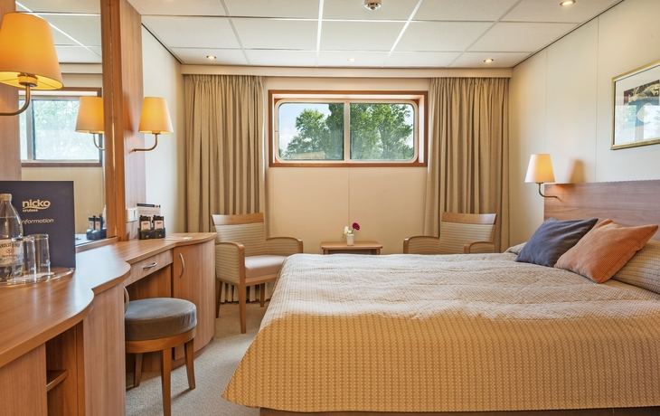 Die Kabinen sind stilvoll und komfortabel eingerichtet mit Dusche/WC, Sat-TV, Telefon, Haartrockner, individuell regulierbarer Klimaanlage/Heizung und Safe. Die Kabinen auf dem Mittel- und Oberdeck sind ca. 14,5 m² groß. Sie bieten nebeneinanderstehende Betten, die auf Wunsch getrennt gestellt werden können. Auf dem Oberdeck verfügen die Kabinen über bis zum Boden reichende Panoramafenster zum Öffnen (französischer Balkon). Die Kabinen auf dem Mitteldeck haben große zu öffnende Panoramafenster. Die Hauptdeck Kabinen verfügen über nicht zu öffnende Aussichtsfenster. Die Hauptdeck achtern Kabinen sind ca. 11,5 m² groß und sind alle mit einem Klappbett und einem Sofabett ausgestattet.