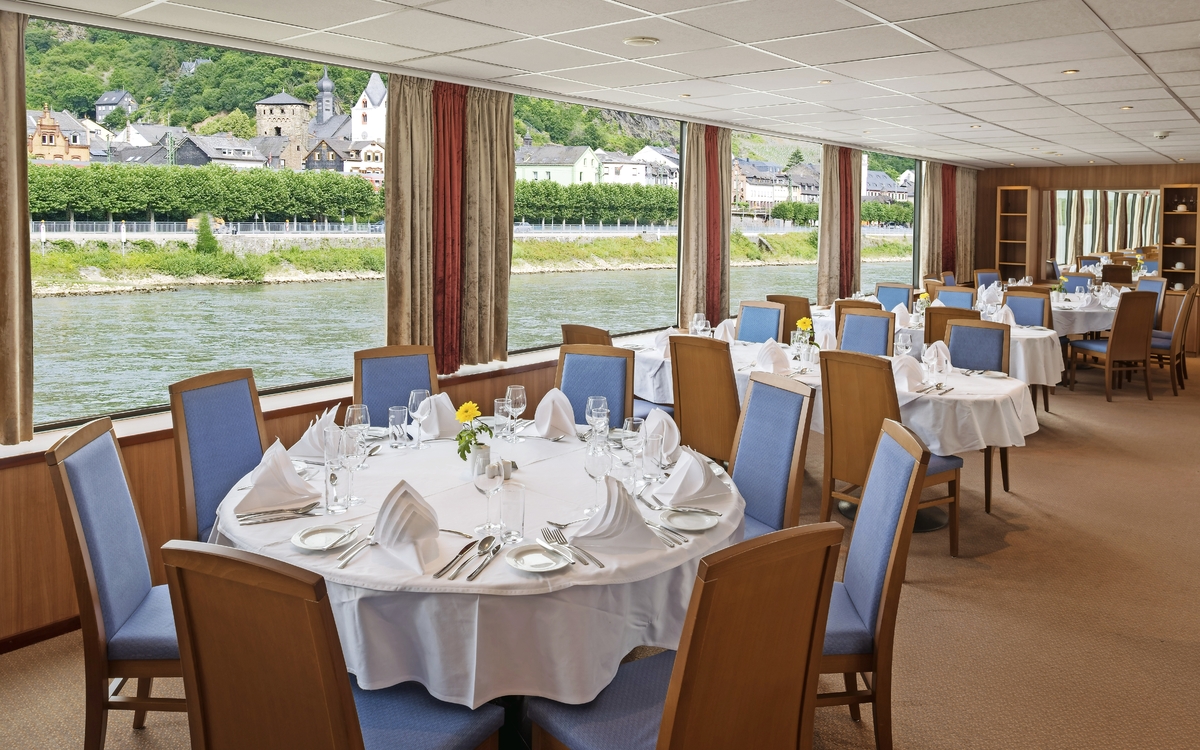 Moderne trifft Komfort an Bord unserer "RHEIN MELODIE". Über 132 Meter Länge erstreckt sich dieses luxuriöse Flussschiff mit höchsten Ansprüchen an Design. Die überaus großzügigen Kabinen bieten alle Annehmlichkeiten und grandiose Aussichten auf die Rheinufer. Aber nicht nur in den Kabinen: Egal, wo man sich auf diesem Schiff aufhält, große Panoramafenster eröffnen ein grandioses Flusskino. Grandios ist auch die Küche an Bord. Täglich werden kulinarische Genüsse geboten, die Kreuzfahrerherzen höher schlagen lassen. Es erwarten Sie ein Panorama-Restaurant, ein Panorama-Salon mit Bar, eine Bibliothek sowie ein Sonnendeck mit Sonnensegel, Liegestühlen und Tischen. Die Bordwährung ist Euro, die Zahlung erfolgt in bar, mit EC-Karte oder Kreditkarte (Mastercard, VISA, PIN-Nummer erforderlich). Die Stromspannung ist 220 V.