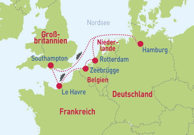 Hamburg – Rotterdam – Zeebrügge – Le Havre – Southampton – Hamburg