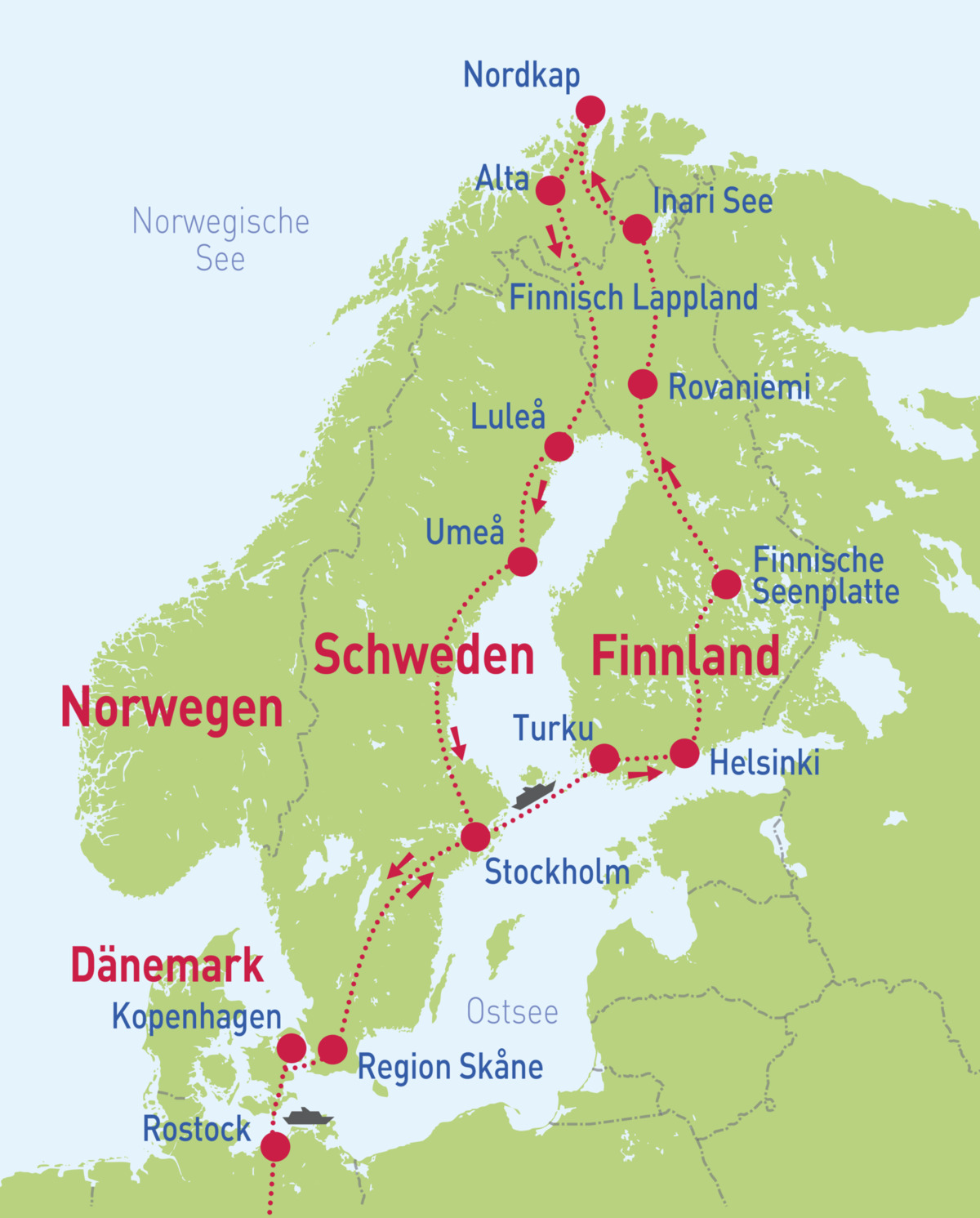 Mit all Ihren gesammelten Erinnerungen im Gepäck treten Sie Ihre Heimreise an. Über die Øresundbrücke und später mit der Fähre nach Rostock geht es zurück zu Ihren Ausgangsorten. Ankunft am Abend.