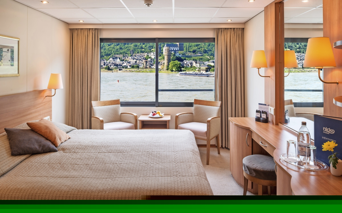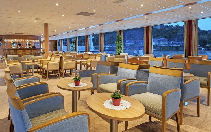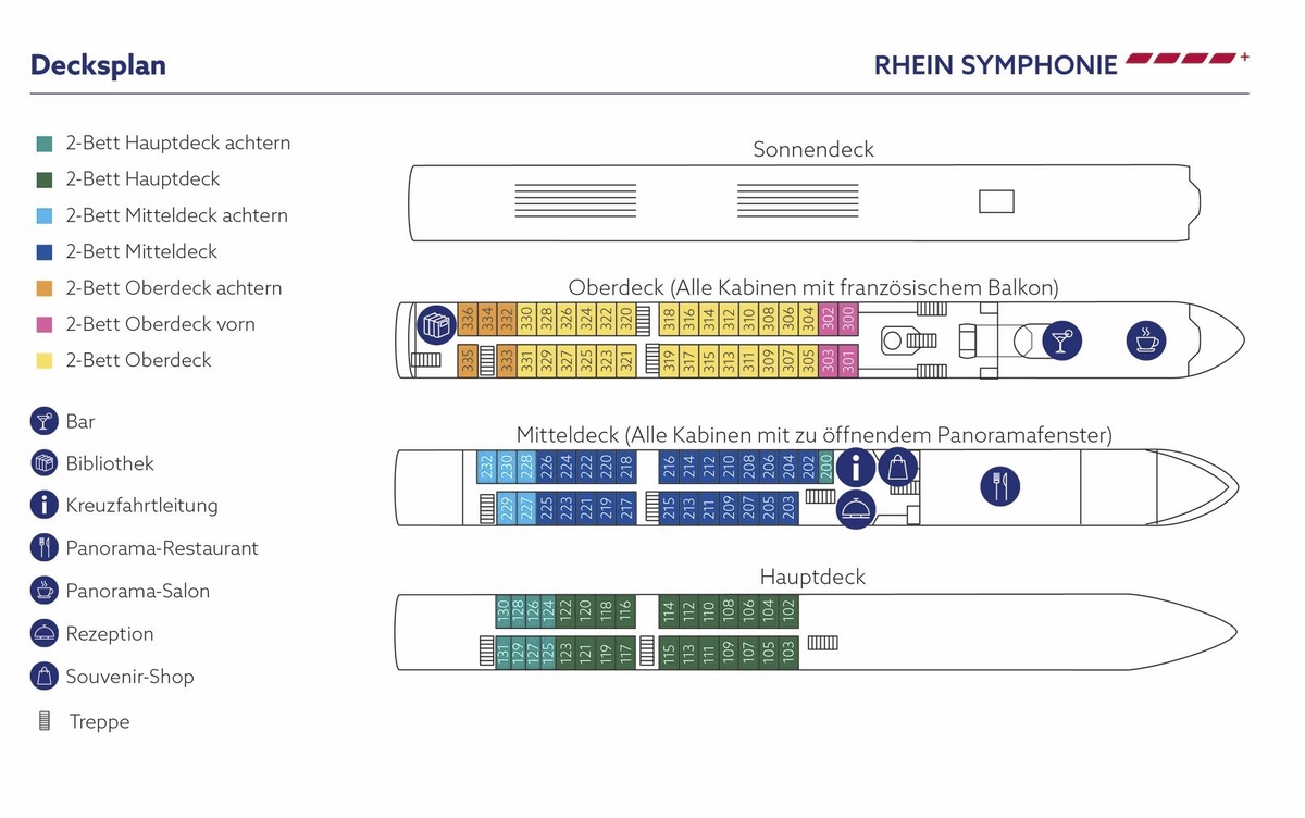 Die "RHEIN SYMPHONIE" ist modern und elegant unterwegs auf Rhein und Mosel. Es erwarten Sie helle Räume und viel Platz. Die großflächigen Panoramafenster garantieren beste Aussichten auf die vorbeiziehende Uferlandschaft und das weitläufige Sonnendeck mit Sonnensegel lädt zum Entspannen ein. Im Panorama-Restaurant werden Ihnen erlesene Spezialitäten serviert, während die Bar im Panorama-Salon zu einem feinen Tröpfchen einlädt. Die Bordwährung ist Euro. Sie könne am Ende der Kreuzfahrt Ihre Rechnung sowie an Bord gebuchte Ausflüge bequem bar, mit Ihrer EC-Karte oder mit Ihrer Kreditkarte (Mastercard, VISA, PIN-Nummer erforderlich) bezahlen. Die Stromspannung ist 220 V.