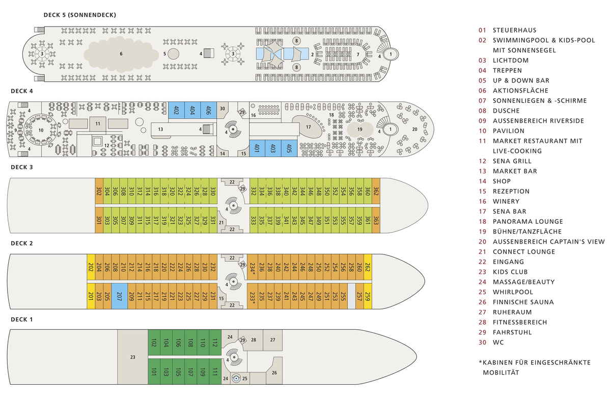Unsere Partnerreederei versucht, Ihre Kabinenwünsche innerhalb Ihrer gebuchten Kategorie zu berücksichtigen, was jedoch nicht immer gelingt.