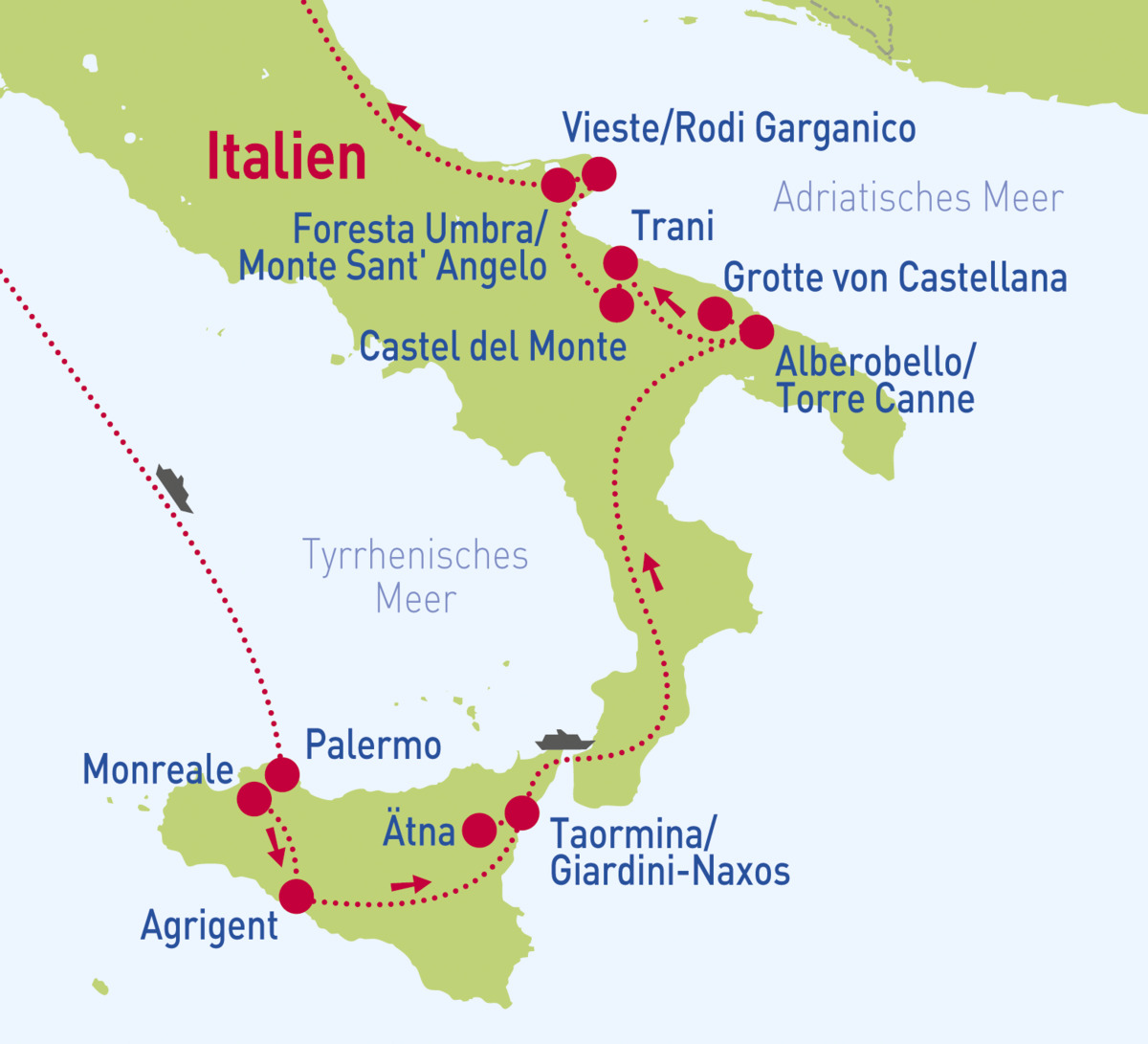 Sizilien – Apulien - Di. 14.04. - Sa. 25.04.26Sizilien – Apulien - Di. 05.05. - Sa. 16.05.26Sizilien – Apulien - Di. 08.09. - Sa. 19.09.26