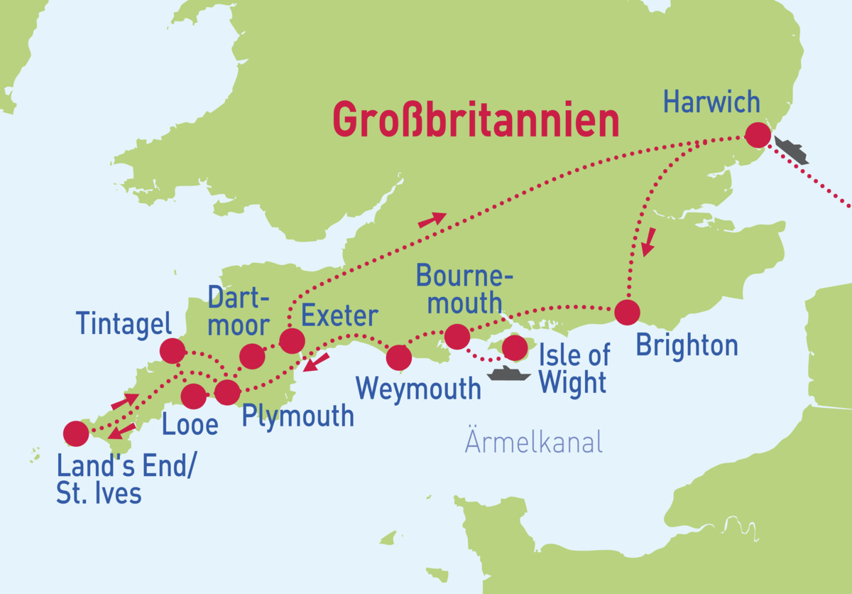 Südengland & Cornwall - So. 03.05. - So. 10.05.26Südengland & Cornwall - So. 24.05. - So. 31.05.26Südengland & Cornwall - So. 21.06. - So. 28.06.26Südengland & Cornwall - So. 12.07. - So. 19.07.26