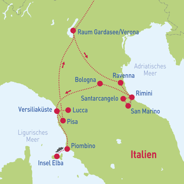 Ravenna – San Marino – Bologna – Insel Elba – Lucca – Pisa