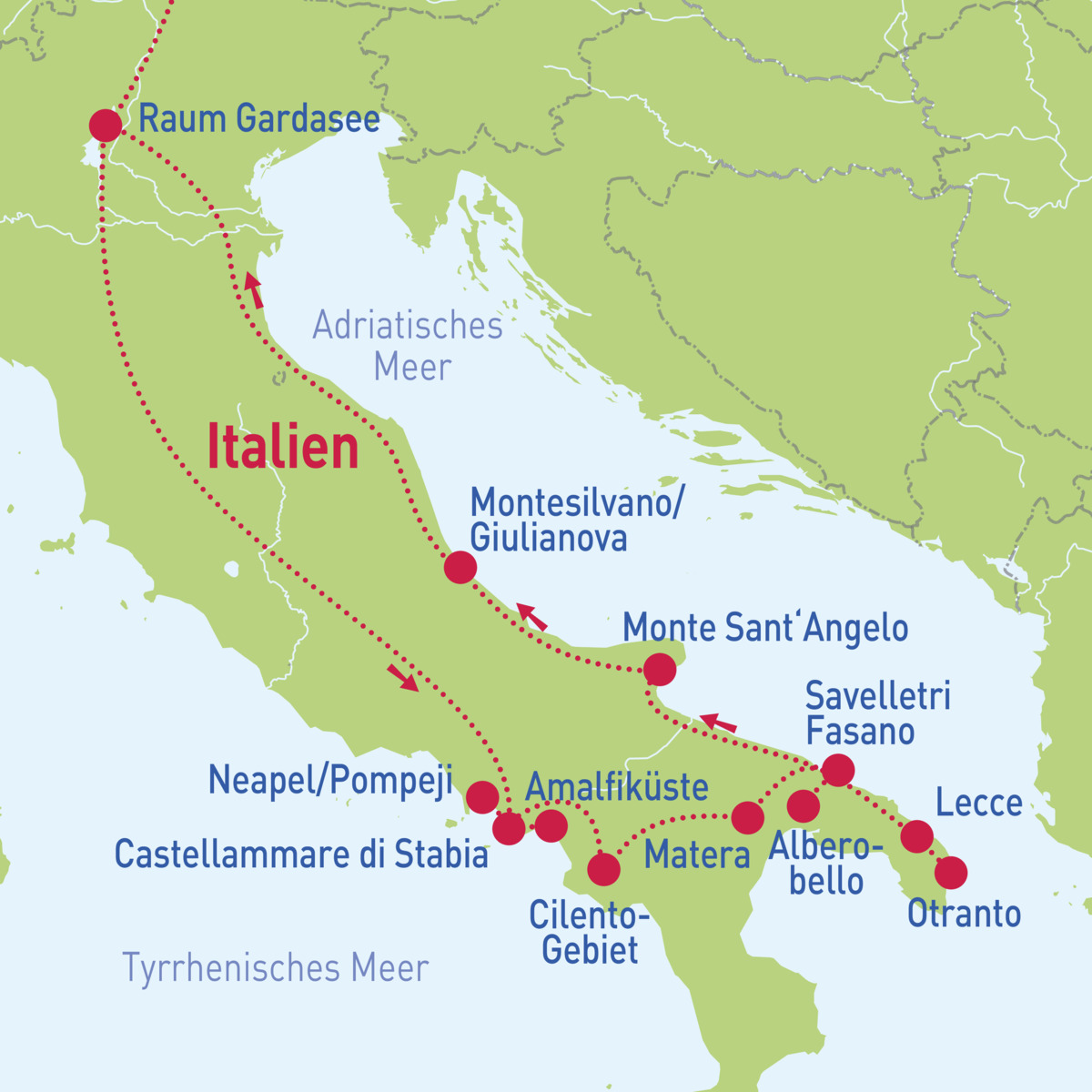 Von der Amalfiküste bis nach Apulien - So. 31.05. - Di. 09.06.26Von der Amalfiküste bis nach Apulien - So. 27.09. - Di. 06.10.26