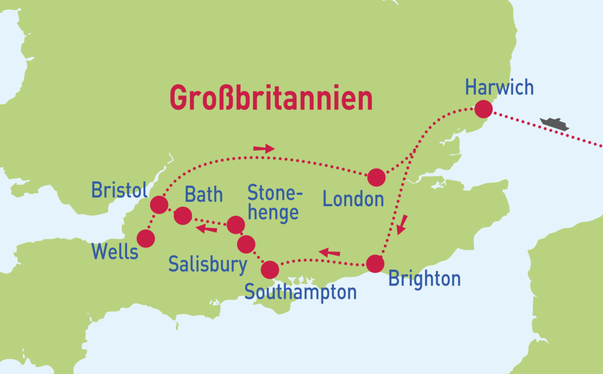 Wunderschönes Südengland - Mo. 20.04. - Sa. 25.04.26Wunderschönes Südengland - Mo. 08.06. - Sa. 13.06.26Wunderschönes Südengland - Mo. 27.07. - Sa. 01.08.26Wunderschönes Südengland - Mo. 24.08. - Sa. 29.08.26